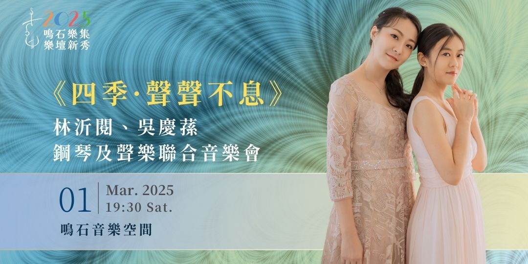 聲樂先後師事陳美玲教授及林玲慧教授。2008年獲選台北市交普契尼歌劇《強尼・史基基》Gherardino一角。2011年榮獲世華聲樂大賽聲樂新秀獎,三度奪得全國學生音樂比賽女高音冠軍。2014年赴歐參加薩爾茲堡音樂營,接受Renate Faltin 及 Ildikò Raimondi 聲樂指導。2018年受邀與閃亮木管五重奏團於國家演奏廳演出《小飛俠彼得潘的奇幻世界》,擔任女高音及說書人,佳評如潮。2022年入選【衛武營週年慶4.0】《武營歐普拉 Let’s Opera !》,由林慈音教授指導演唱德弗札克〈月之頌〉。2024年獲選鳴石樂集樂壇新秀,榮獲好聲藝集好聲音樂大賽聲樂社青組特優第一名及邱玉蘭教授歌劇大賽愛樂組銀獎。