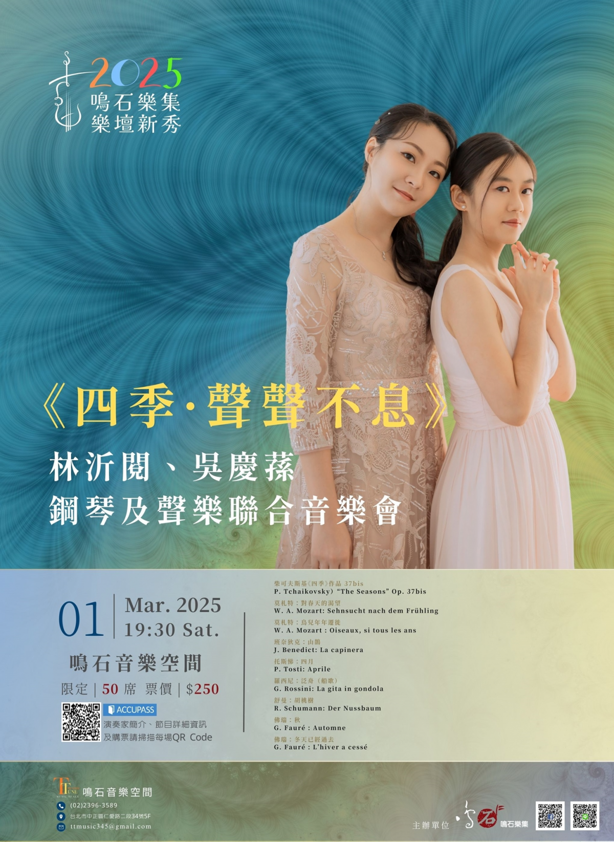 *註:曲目未按演出順序排列,實際演出時將於鋼琴組曲間穿插藝術歌曲