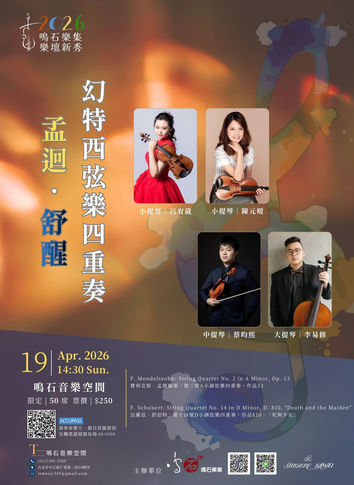 幻特西弦樂四重奏,四位來自臺灣的好朋友,團員皆為臺南國立的音樂系翹楚,對音樂有相當大的熱情和執著,多方嘗試各種不同曲風之作品,未來展望於國際音樂比賽和音樂會規劃,並以成為國際級職業團體為目標。曾接受張又瑛、Agnes Langer 等教授大師班指導。